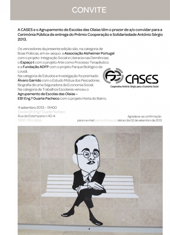 Prémio Cooperação e Solidariedade António Sérgio Realiza-se no dia 4 de setembro a Cerimónia Publica de Entrega do Prémio Cooperação e Solidariedade António Sérgio Ver numa página Ver Slideshow